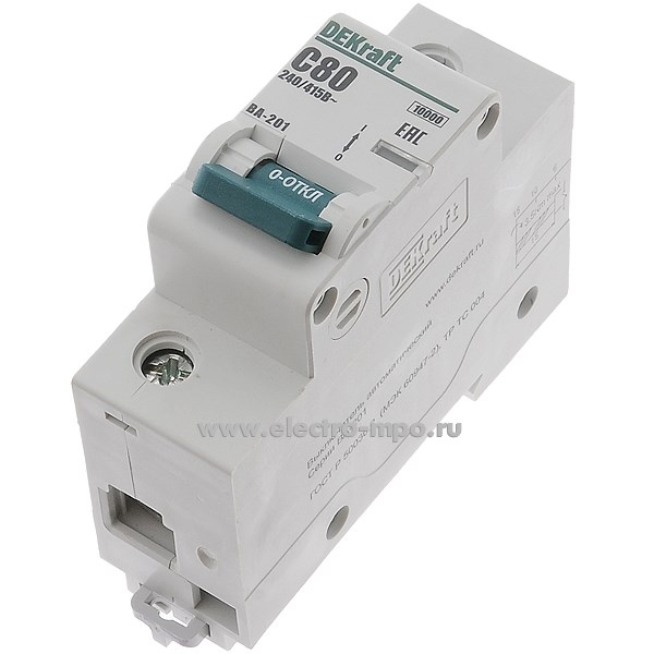 А0572. Автоматический выключатель ВА201-1P-080А-C 13002DEK C80А/1п/ 10кА на Din-рейку (DEKraft)