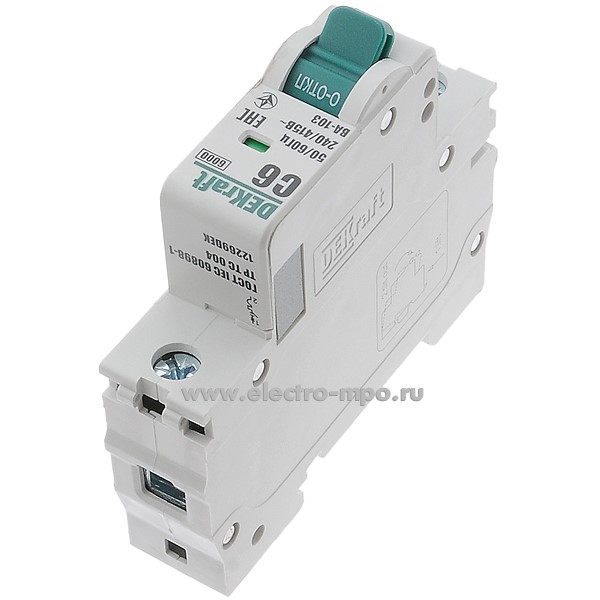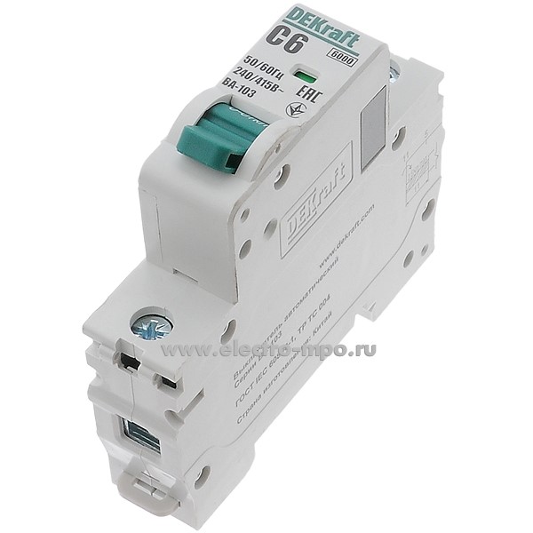 Автоматический выключатель ВА103-1P-006А-C 12269DEK C6А/1п/ 6кА на Din-рейку (DEKraft)