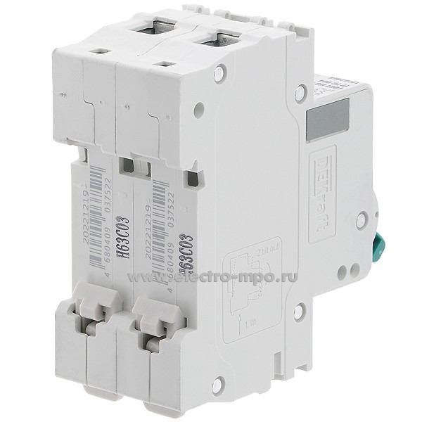 А0518. Автоматический выключатель ВА103-2P-003А-C 12282DEK C3А/2п/ 6кА на Din-рейку (DEKraft)