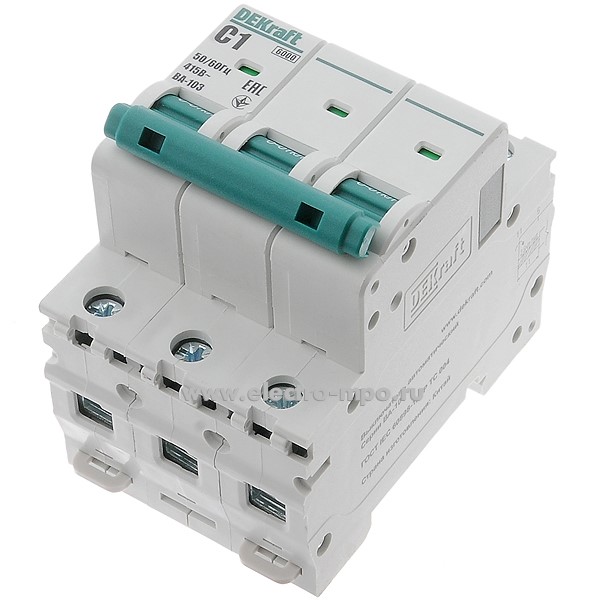 Автоматический выключатель ВА103-3P-001А-C 12296DEK C1А/3п/ 6кА на Din-рейку (DEKraft)