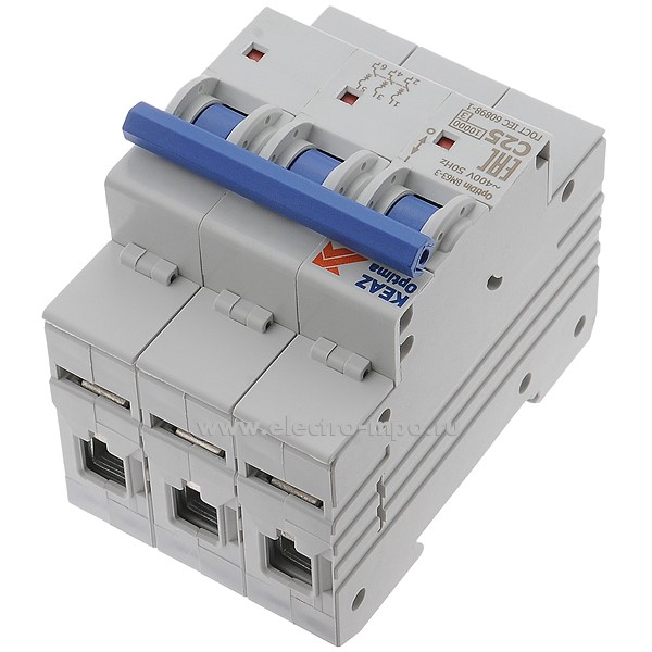 А1634. Автоматический выключатель OptiDin BM63-3C25 25А/3п/ 10кА на Din-рейку 249206 (КЭАЗ)