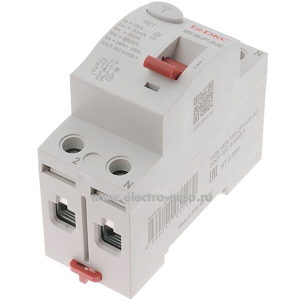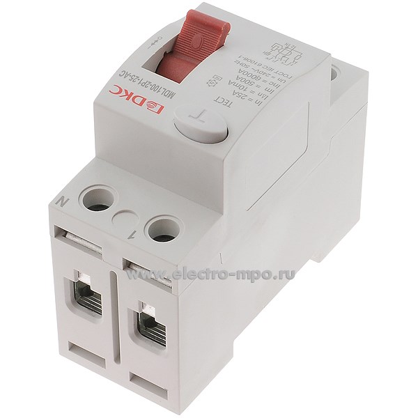 А1781. Устройство защитного откл. YON max MDL100-2P1-25-AC (тип AC) 25А-10мА 230В 2Р 6кА (ДКС)