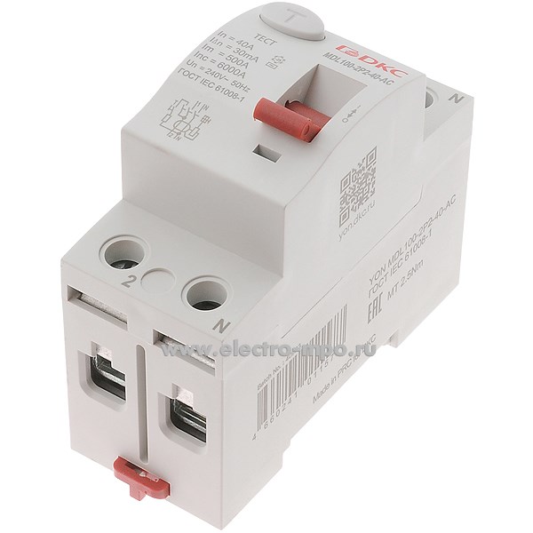 А1783. Устройство защитного откл. YON max MDL100-2P2-40-AC (тип AC) 40А-30мА 230В 2Р 6кА (ДКС)