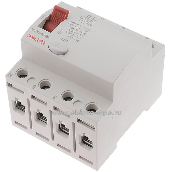А2433. Устройство защитного отключения УЗО-03new 14233DEK (тип АС) 25А-30мА 400В 3P+N 6кА (DEKraft)