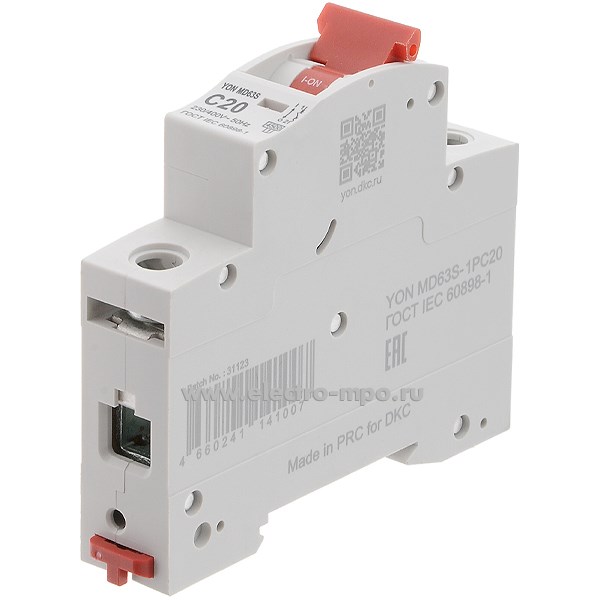 А1705. Автоматический выключатель YON max MD63N-1PC20 20А/1п/ 6кА на Din-рейку (ДКС)