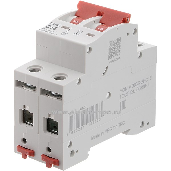А1715. Автоматический выключатель YON max MD63N-2PC16 16А/2п/ 6кА на Din-рейку (ДКС)
