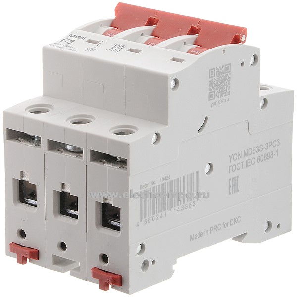 А2031. Автоматический выключатель YON max MD63S-3PC3 3А/3п/ 4,5кА на Din-рейку (ДКС)