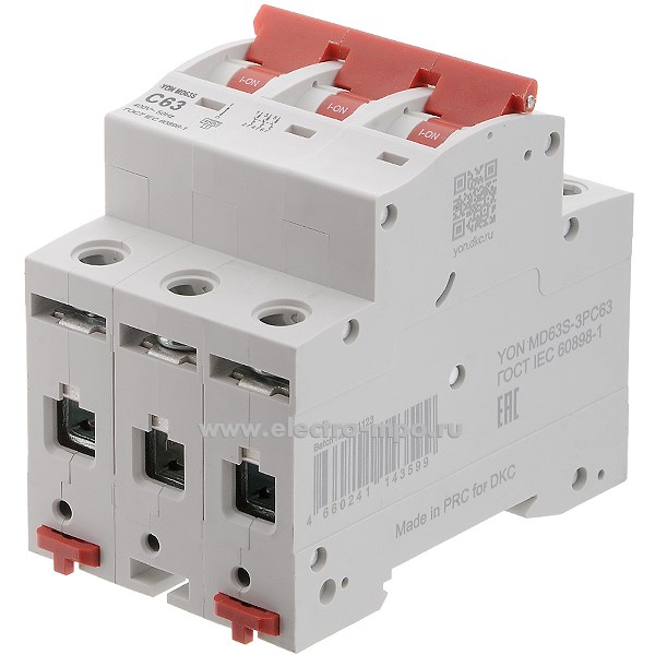 А1732. Автоматический выключатель YON max MD63N-3PC63 63А/3п/ 6кА на Din-рейку (ДКС)