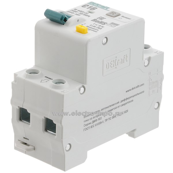 Дифф. автомат ДИФ103 16302DEK (тип АС) 16А-10мА 230В 1P+N 2мод. 6,0кА х-ка С (DEKraft)
