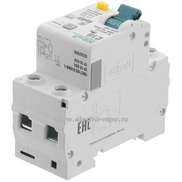 А2202. Дифф. автомат ДИФ103 16302DEK (тип АС) 16А-10мА 230В 1P+N 2мод. 6,0кА х-ка С (DEKraft)