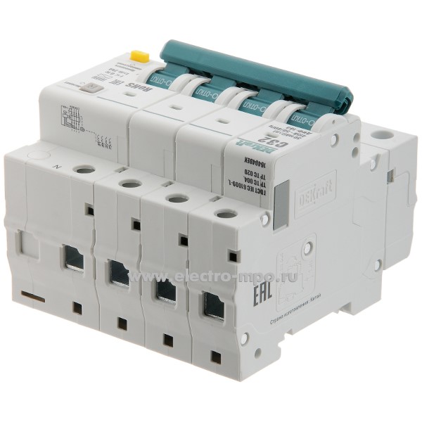 А2256. Дифф. автомат ДИФ103 16404DEK (тип АС) 32А-30мА 400В 3P+N 5мод. 6,0кА х-ка С (DEKraft)