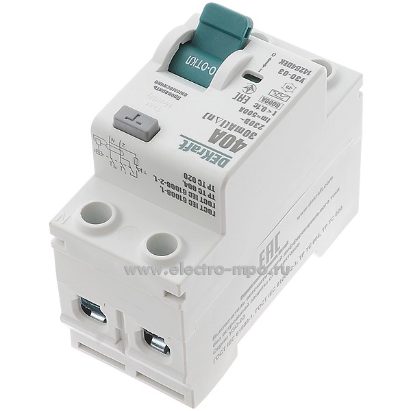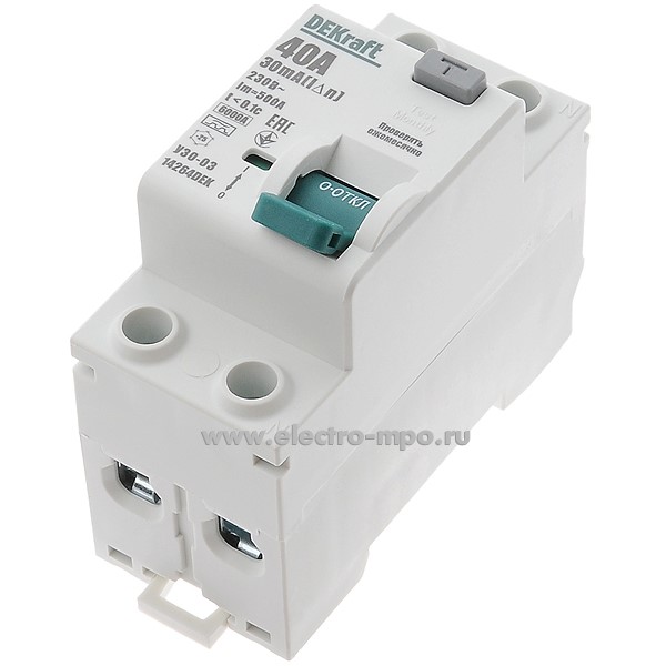 А2464. Устройство защитного отключения УЗО-03new 14264DEK (тип А) 40А-30мА 230В 1P+N 6кА (DEKraft)