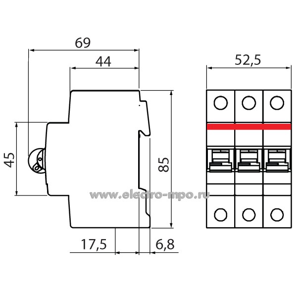А1732. Автоматический выключатель YON max MD63N-3PC63 63А/3п/ 6кА на Din-рейку (ДКС)