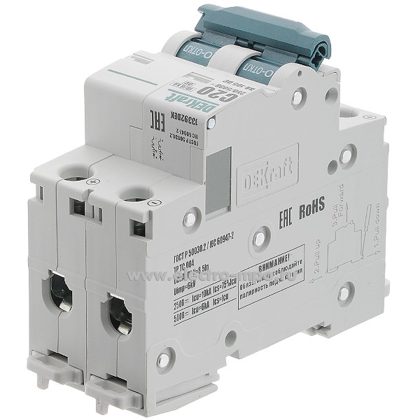 Автоматический выключатель ВА105-DC 13392DEK C20А/2п/ 10кА на Din-рейку (DEKraft)