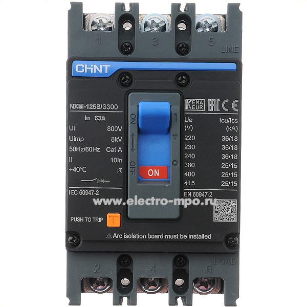 К9862. Автоматический выключатель 131360 NXM-125S/3P 63А 25кА при 400В (CHINT)