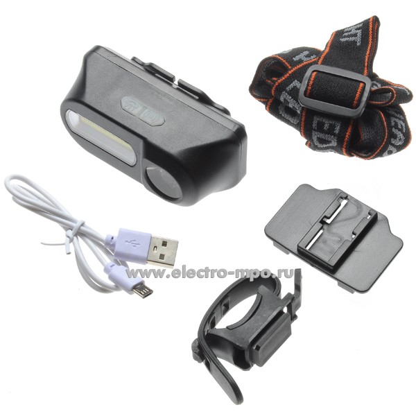 С6421. Фонарь LED53763 светодиодный налобный 4Вт аккумуляторный с велокреплением IP43 (Ultraflash)
