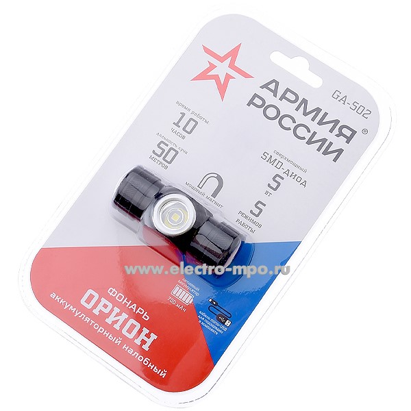 С6459. Фонарь Б0052317 GA-502 5Вт светод. налобный аккумуляторный на магните IP40 (Армия России)