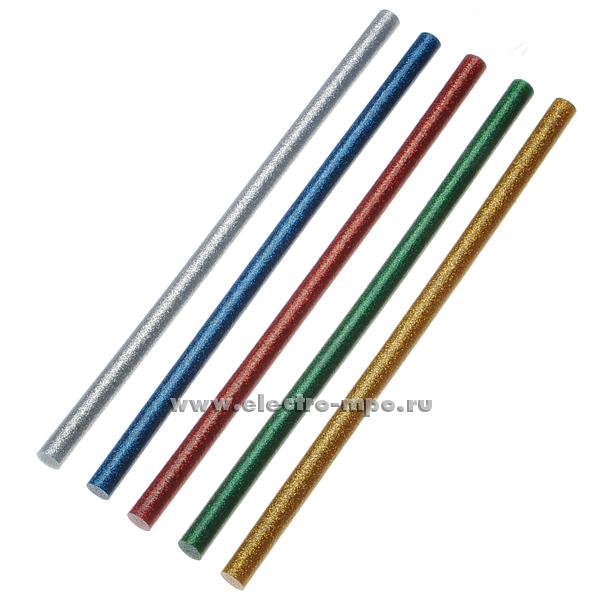 И4141. Стержень 09-1285 клеевой универсальный цветной с блестками 11,3х270мм (компл. 10 шт) (Rexant)