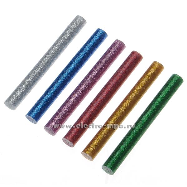 Стержень 09-1235 клеевой универсальный цветной с блестками 11х100мм (компл. 12 шт) (Rexant)