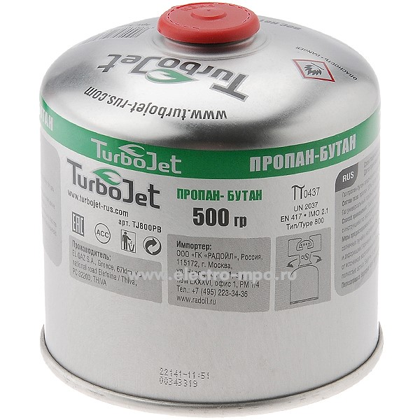 В1164. Баллон TJ800PB (ТУРИЗМ) резьбовое соединение 7/16", газ пропан-бутан 500г (TurboJet)