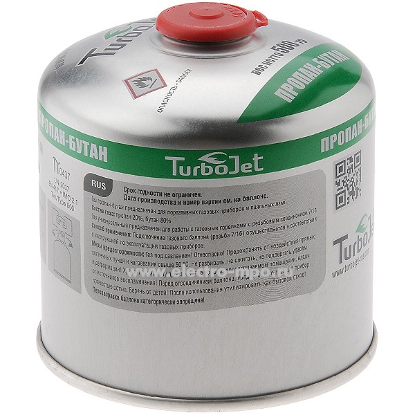 Баллон TJ800PB (ТУРИЗМ) резьбовое соединение 7/16", газ пропан-бутан 500г (TurboJet)