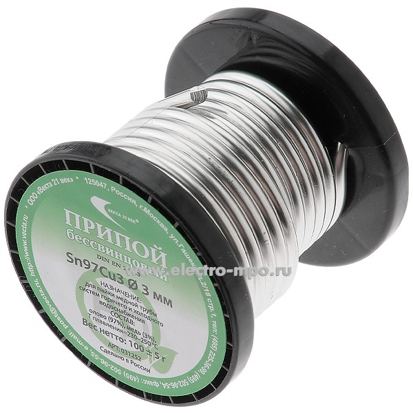 - В3391. Припой 031252 Sn97Cu3 проволока 3,0 D=3,0мм 100 г на катушке (Москва)