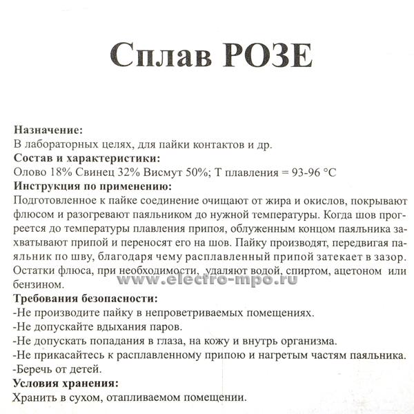 Припой 191104 "Сплав РОЗЕ" 100г в гранулах (Москва)