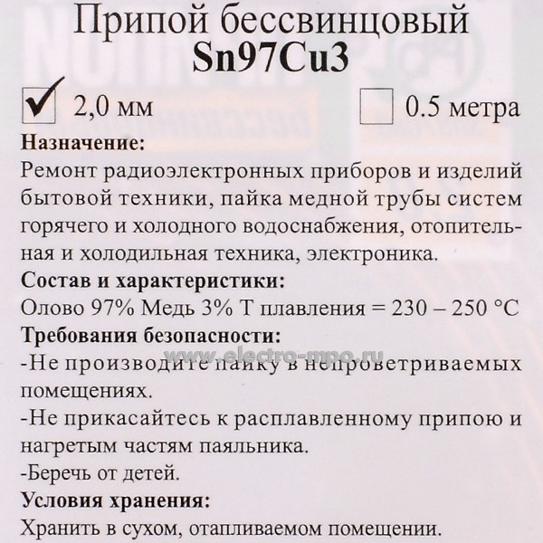 В3390. Припой 031251 Sn97Cu3 проволока 2,0 D=2,0мм 100 г на катушке (Москва)