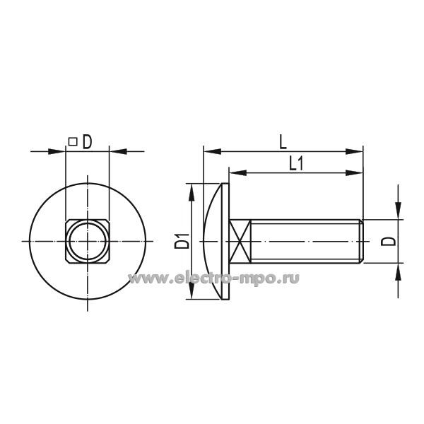 М9316. Винт СМ010620 М6х20 с гладкой головкой и квадратным подголовником (ДКС)
