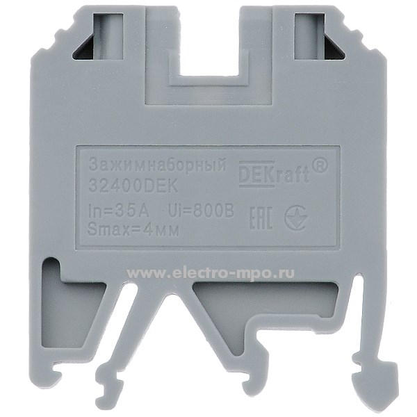 Б0637. Клемма ЗН101-4-35A-07 винтовая 32400DEK серая 4мм2 35А 800В ширина 6,5мм (DEKraft)