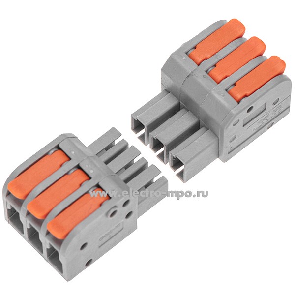 Клемма 07-5263 СМК 222-423R проходная разъемная 3 полюса серая 0,2-2,5/4мм2 (Rexant)