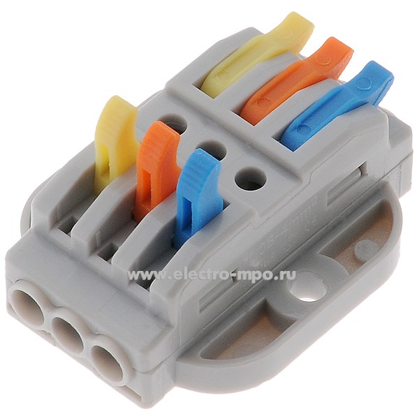 Клемма 07-6263 СМК 222-423P проходная 3 полюса с монтажной площадкой (0,08-4мм2) серая (Rexant)