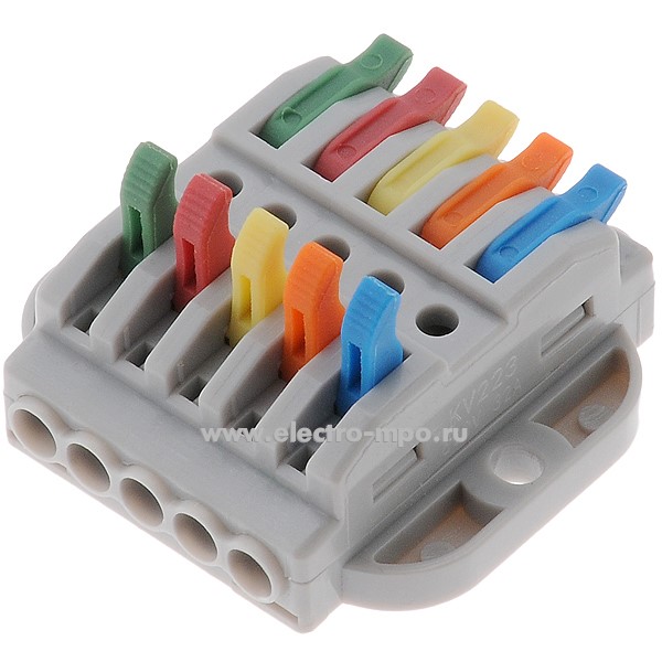 К42. Клемма 07-6265 СМК 222-425P проходная 5 полюсов с монтажной площадкой (0,08-4мм2) серая (Rexant)