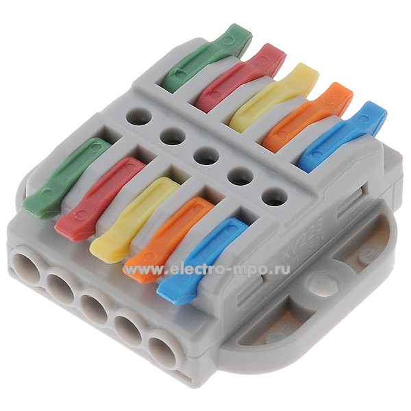Клемма 07-6265 СМК 222-425P проходная 5 полюсов с монтажной площадкой (0,08-4мм2) серая (Rexant)