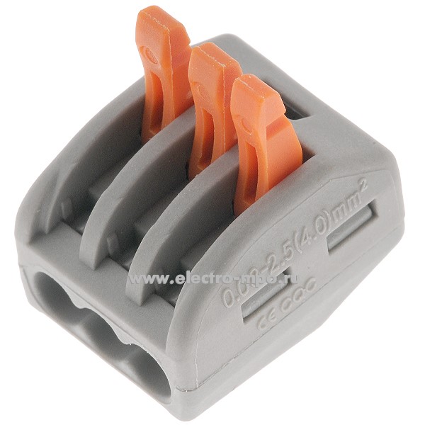К4329. Зажим 18-213 безвинтовой 3х(0,14-4,0) кв.мм оранжевые клавиши (Электромонтаж)