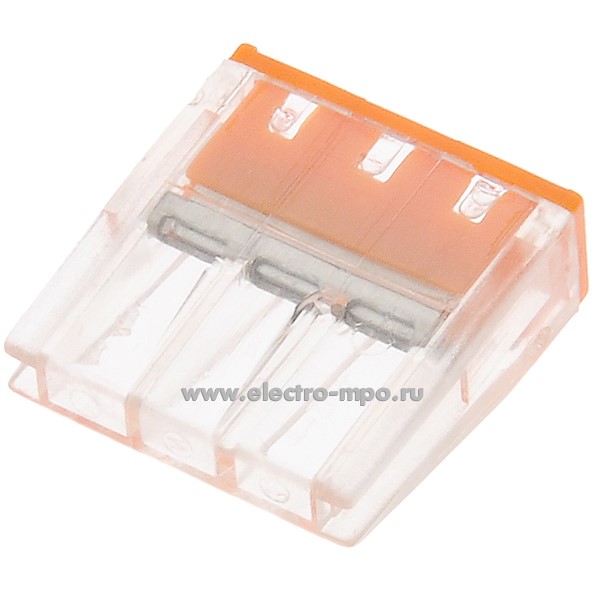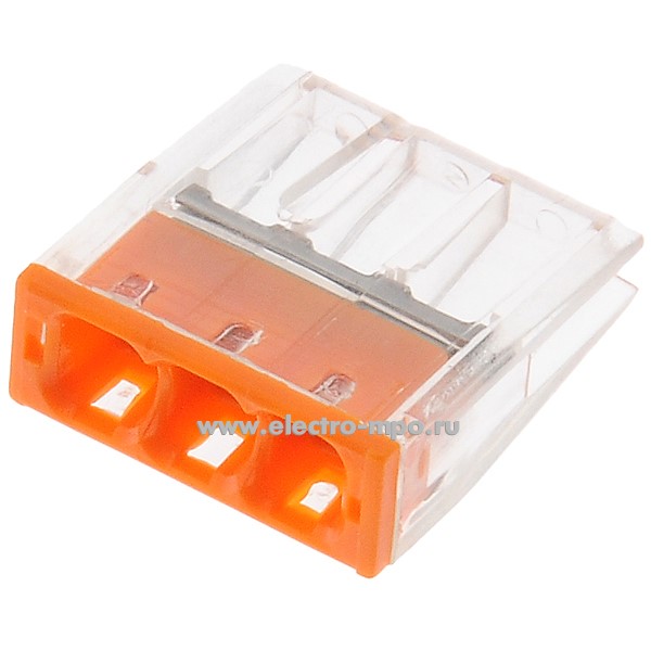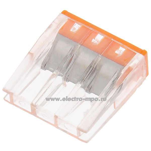 К4226. Зажим NO-225-358 Б0067904 (NO-224-23 Б0043941) безвинт. 3х(0,5-2,5) кв.мм комп. прозр.-оранж. (ЭРА)