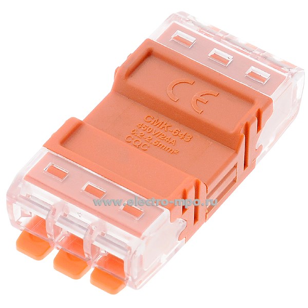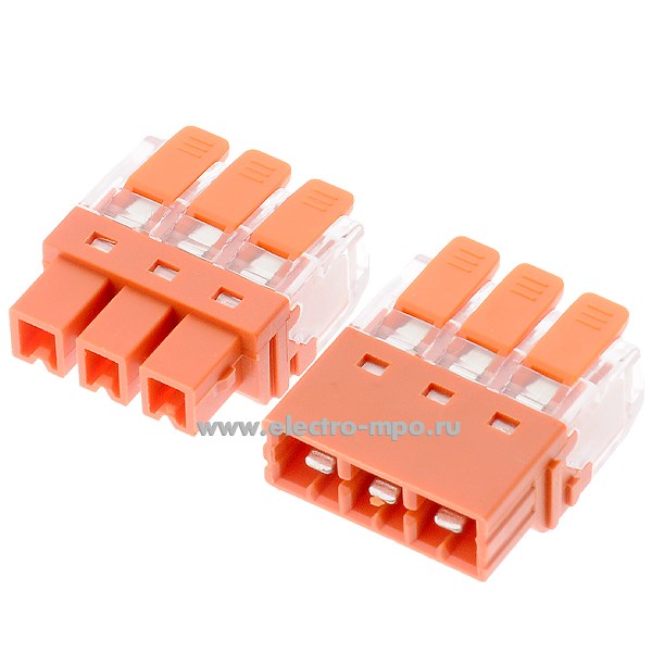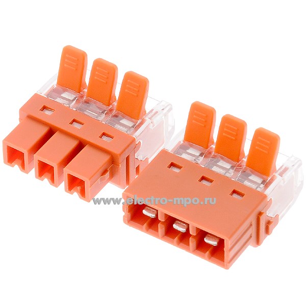 К4237. Зажим 95185 NTC-R3-3-3-r безвинтовой, с рычагом, разъемный 3 пары х(0,2-2,5) кв.мм проходной, оранж