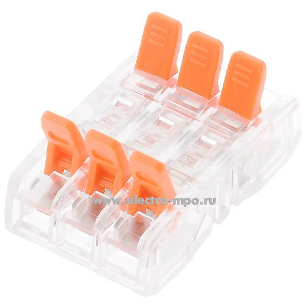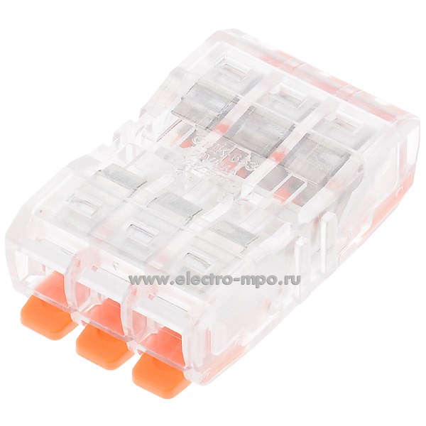 К4240. Зажим 95188 NTC-R4-3-3-50 безвинтовой, с рычагом 3 пары х(0,2-2,5) кв.мм проходной прозр.(Navigator