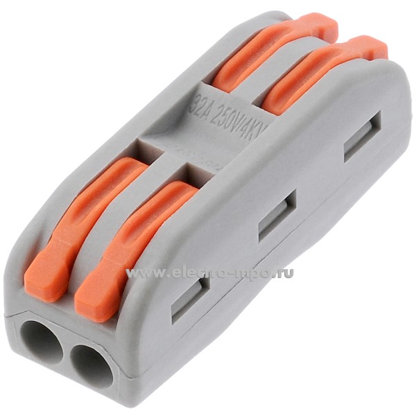 К4342. Зажим VSE-N4H-2P безвинтовой 2 пары х(0,14-4,0) кв.мм. серый (Электромонтаж)
