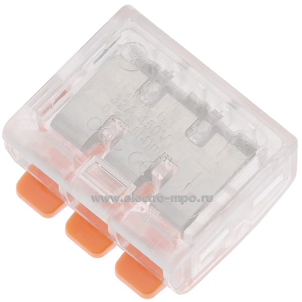 К4329. Зажим 18-213 безвинтовой 3х(0,14-4,0) кв.мм оранжевые клавиши (Электромонтаж)