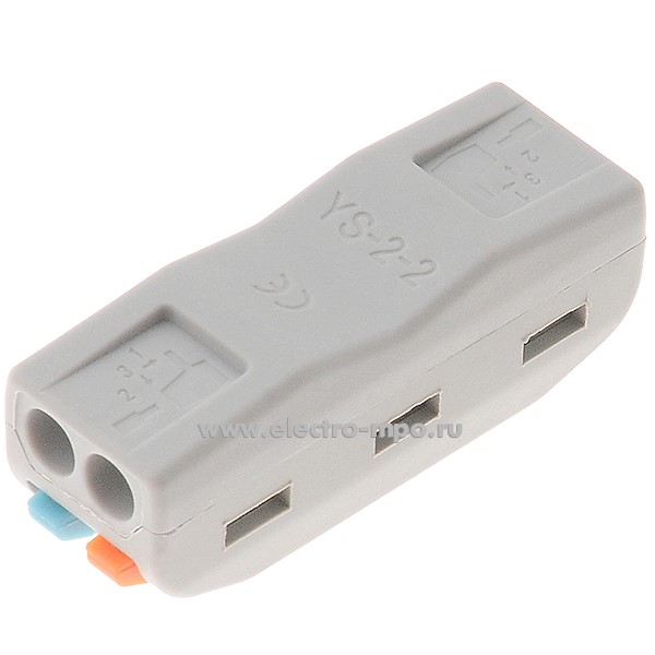 Зажим 212 (PCT-2-2) безвинтовой 2 пары х(0,08-4,0) кв.мм проходной серый (JOHNN Китай)