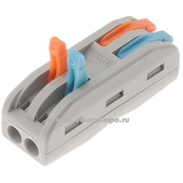 К4280. Зажим 212 (PCT-2-2) безвинтовой 2 пары х(0,08-4,0) кв.мм проходной серый (JOHNN Китай)