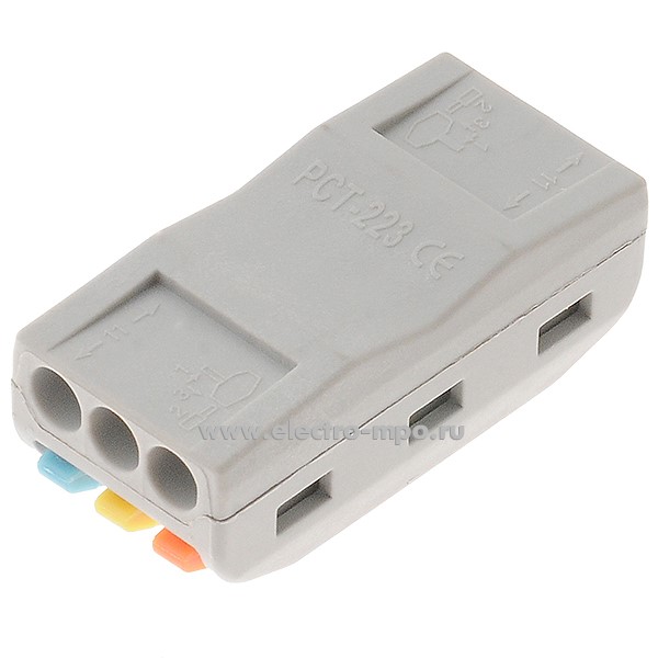 Зажим 313 (PCT-2-3) безвинтовой 3 пары х(0,08-4,0) кв.мм проходной серый (JOHNN Китай)