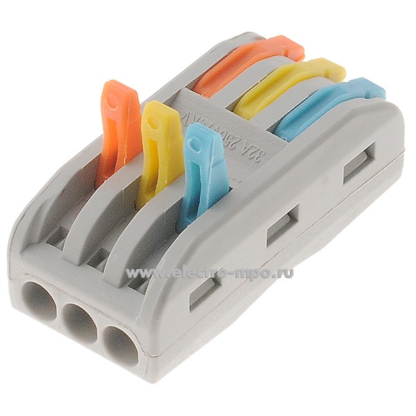 К4281. Зажим 313 (PCT-2-3) безвинтовой 3 пары х(0,08-4,0) кв.мм проходной серый (JOHNN Китай)
