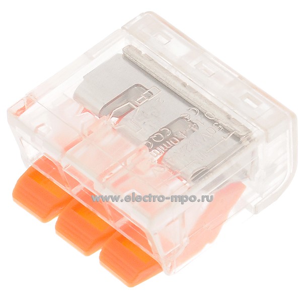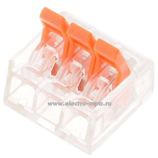 К4286. Зажим 221-413 (PCT-413) безвинтовой 3 х (0,2-4,0) кв.мм быстрозажимной (JOHNN Китай)