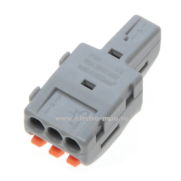 К4312. Зажим VSE-F13АO безвинтовой F-тип 4х(0,08-4.0) кв.мм серый (Электромонтаж)