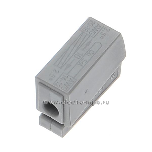 К4365. Зажим VSE-101A безвинтовой 1х(1,0-2,5)/1х(0,5-2,5) кв.мм серый (Электромонтаж)