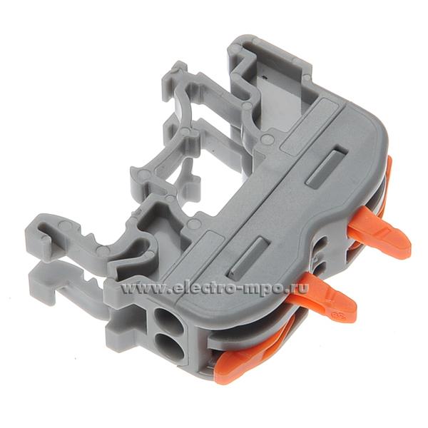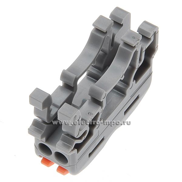 К4382. Зажим VSE-К412A безвинтовой 2 пары х(0,08-4,0)кв.мм проходной на DIN-рейку серый (Электромонт
