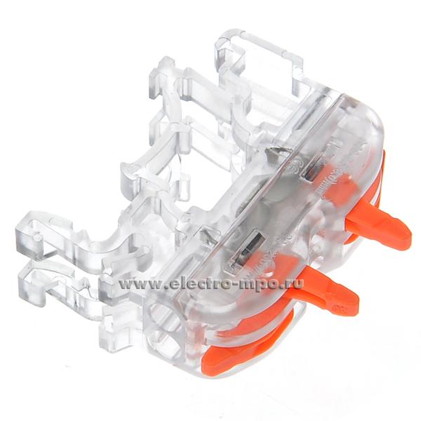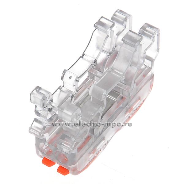 К4383. Зажим VSE-К412W безвинтовой 2 пары х(0,08-4,0)кв.мм проходной на DIN-рейку прозрачный (Элект