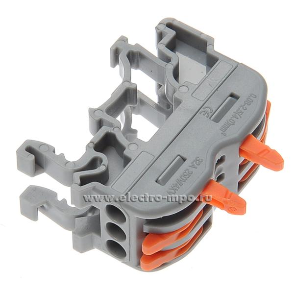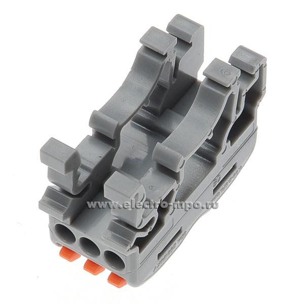К4384. Зажим VSE-К413A безвинтовой 3 пары х(0,08-4,0)кв.мм проходной на DIN-рейку серый (Электромон